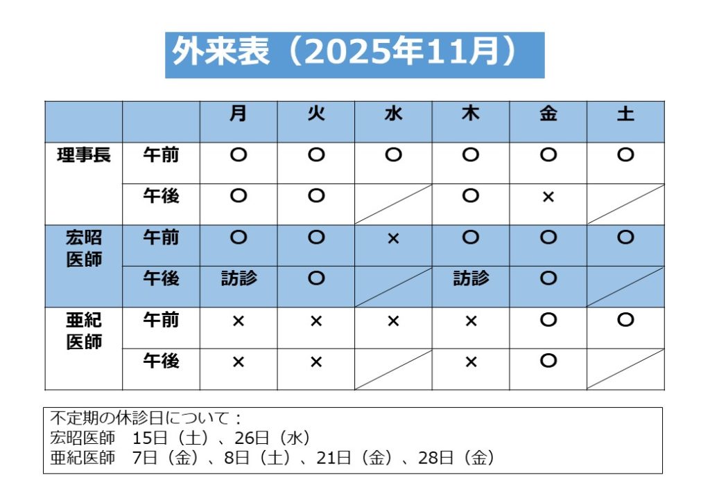 TOP > お知らせ・ブログ > 2025年11月外来表